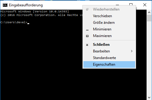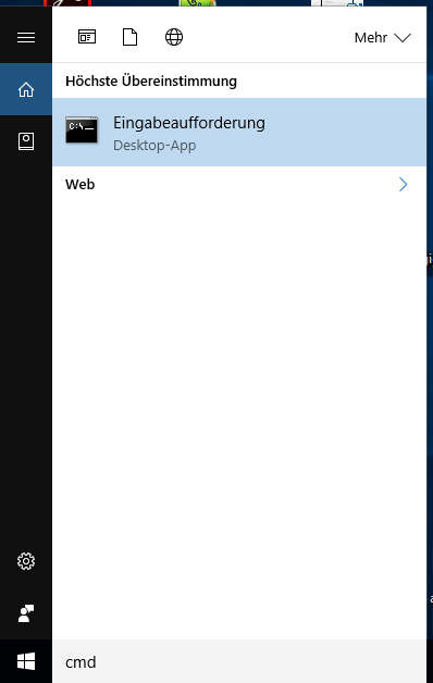 Die Eingabeaufforderung habe ich durch die Eingabe von "cmd" aufgerufen.