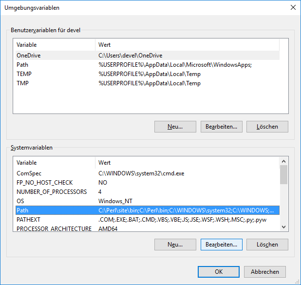 Es wird hier außerdem gezeigt, wie die Path-Variable geändert wird.