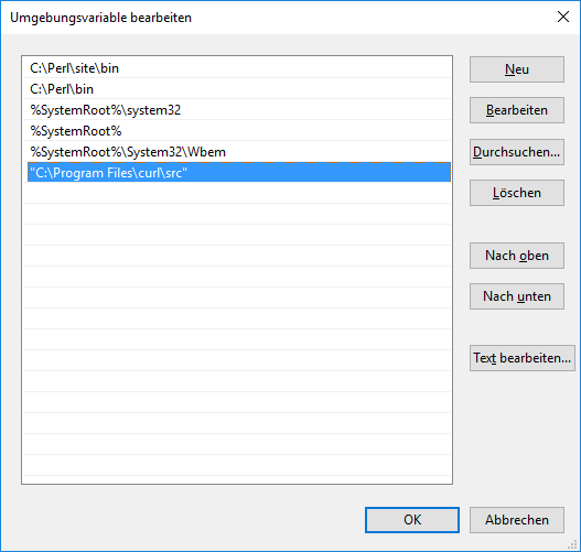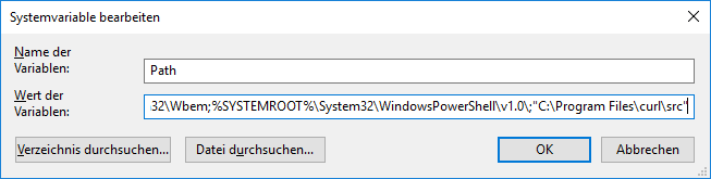 Zum Verzeichnis durchhangeln (hier C:\Program Files\curl\src\). Dann auf "OK".