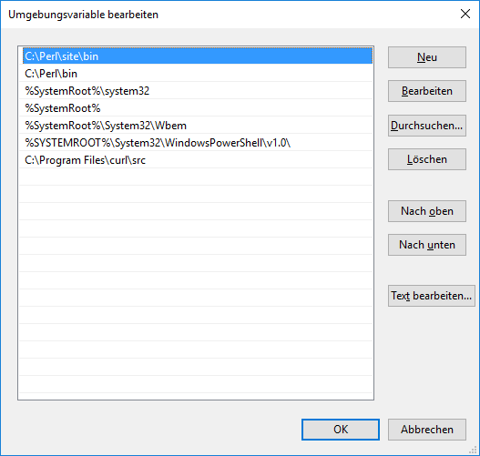 Es erscheint das folgende Fenster. Dort bei "Systemvariablen" die Variable "Path" auswählen und dann auf "Bearbeiten" klicken.
