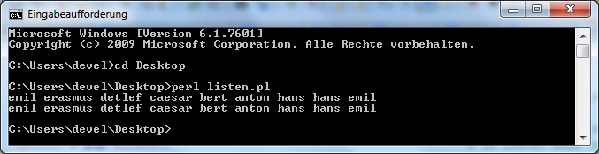 D.h. in der Liste @vornamen ist 'anton' das 0. Element, 'bert' das 1. Element, 'caesar' das zweite Element usw.