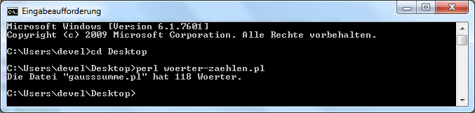 print "Die Datei \"$datei\" hat $anzahl_gesamt Woerter. \n";