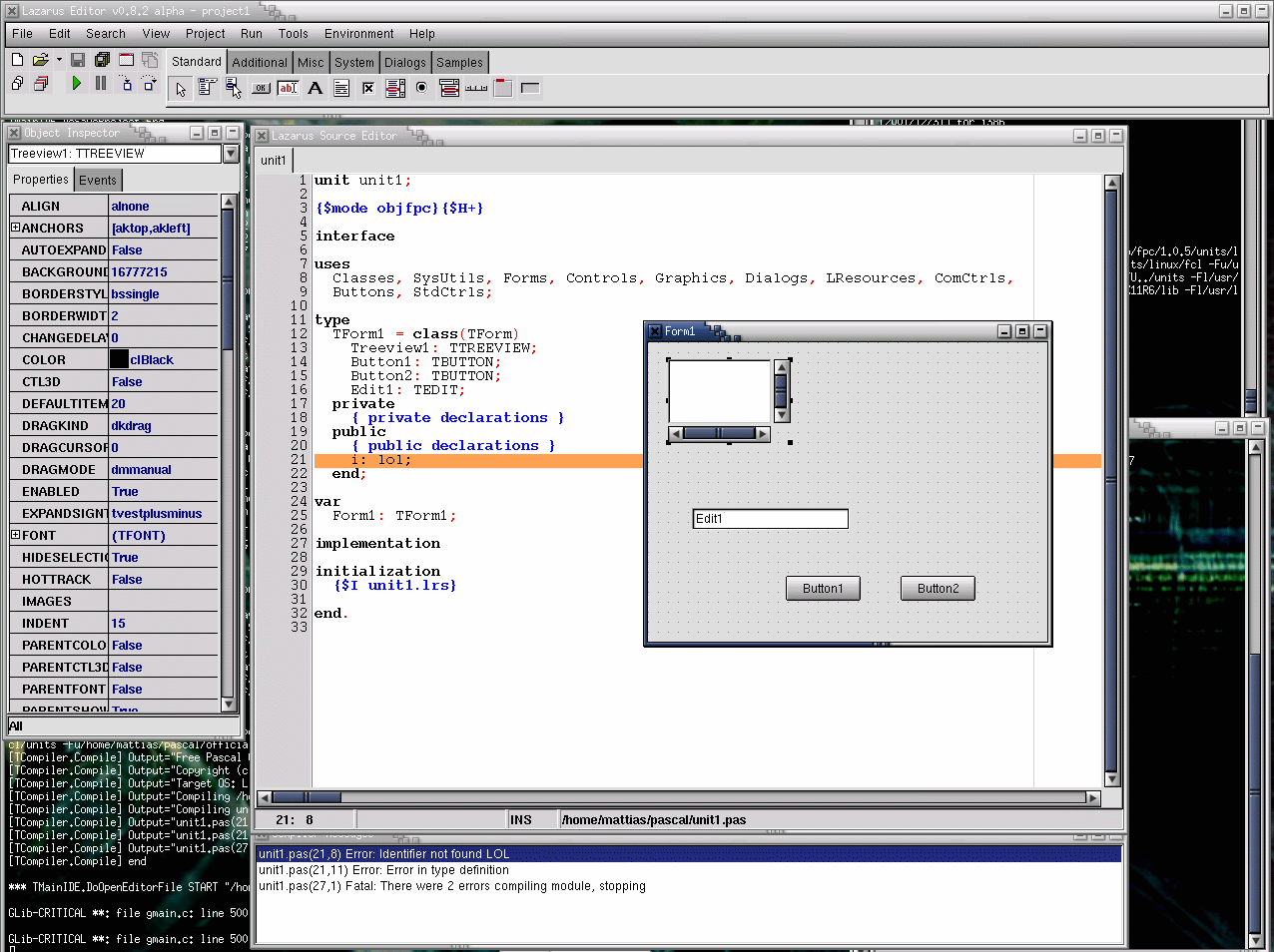 Zur Entwicklung größerer Applikationen kann das Lazarus-Projekt verwendet werden. Es stellt eine Entwicklungsumgebung ähnlich Delphi dar und zielt vor allem auf Plattformunabhängigkeit. Neben einem Klassenbrowser, Objekteditor und Quelltexteditor mit Syntaxhilighting bietet die Applikation auch einen GUI-Editor, der es ermöglicht, eine graphische Benutzeroberfläche einfach nach den Wünschen des Anwenders und Programmierers "zusammenzuklicken".