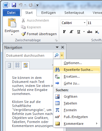 2. bei "Dokument durchsuchen" auf den Dropdownpfeil auf "Erweiterte Suche" |