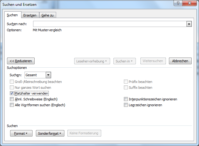 Word kennt wie jede (gute) Textverarbeitung die Suche mit Mustervergleich, also die Verwendung
