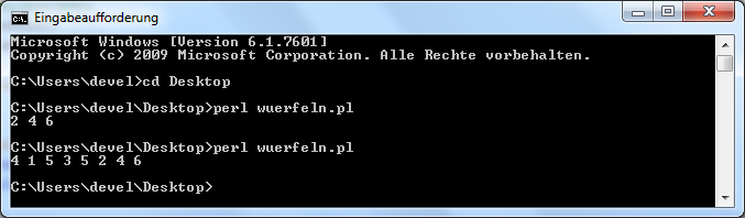 Es wurde mit diesem Programm 2x gewürfelt. Das sah bei mir so aus:
