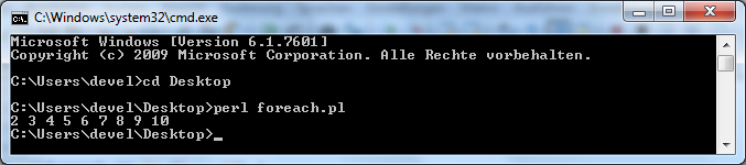- Ändern Sie das Programm so, dass Zahlen untereinander (also zeilenweise) ausgegeben werden.