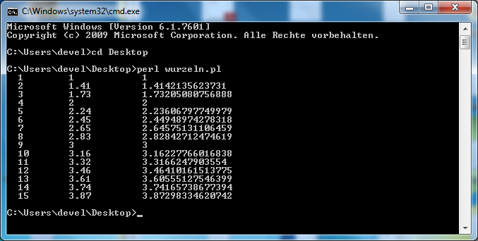 Es sollen die Quadratwurzeln von 1 bis zu einer "größten Zahl" ermittelt werden. Diese "größte Zahl" wird als Parameter übergeben.