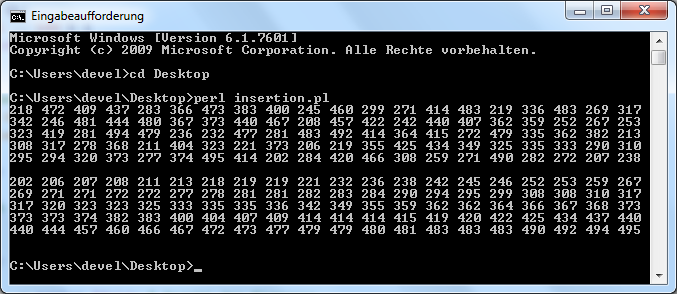 Das Programm zum Sortieren mit Insertion-Sort sieht so aus: