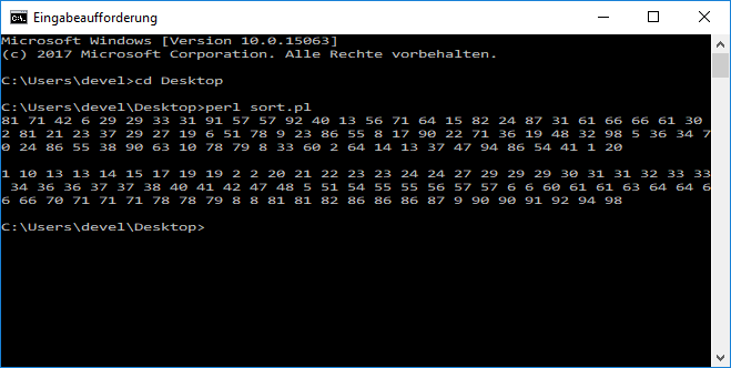 Um eine Liste zu sortieren, verwendet man den Befehl sort. Diese sortiert die Liste