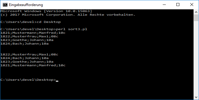 - Ändern Sie den Aufruf von "sort" im Hauptprogramm so ab, dass die Variablen $a und $b vertauscht werden. Testen Sie das.